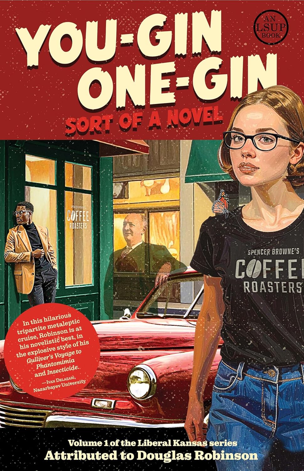 You-Gin One-Gin: Sort of a Novel is a strange, clever, and self-aware book that lives somewhere between literary metafiction, campus novel, and sports novel. It starts as a stage adaptation of Eugene Onegin for a small Midwestern university, with Pushkin himself striding around the stage and arguing with his own characters. Around that, an editorial foreword and the later sections, “Pushkin” and “Nabokov,” spin out a campus story involving a near assassination, an alleged alien abduction at a lingerie league football game, and a ghostly Vladimir Nabokov who may or may not be narrating part of what we are reading. All of it sits inside a fake university press package that treats the whole thing as if it were a serious publication from Liberal State University Press, complete with squabbles over authorship and attribution.